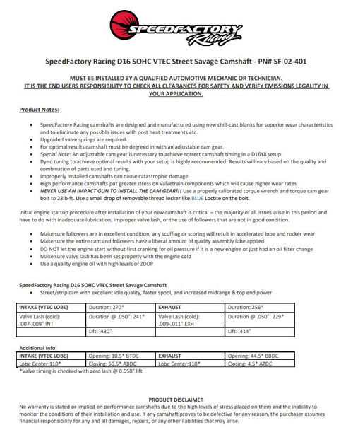 SpeedFactory Racing D16Z/Y SOHC VTEC Valve Springs & Titanium RetainersSpeedFactory Racing