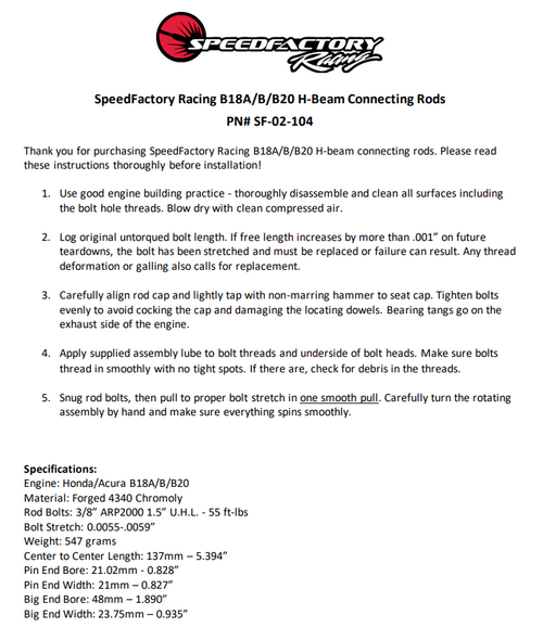 SpeedFactory Racing B18A/B/B20 Forged Steel H-Beam Connecting RodsSpeedFactory Racing